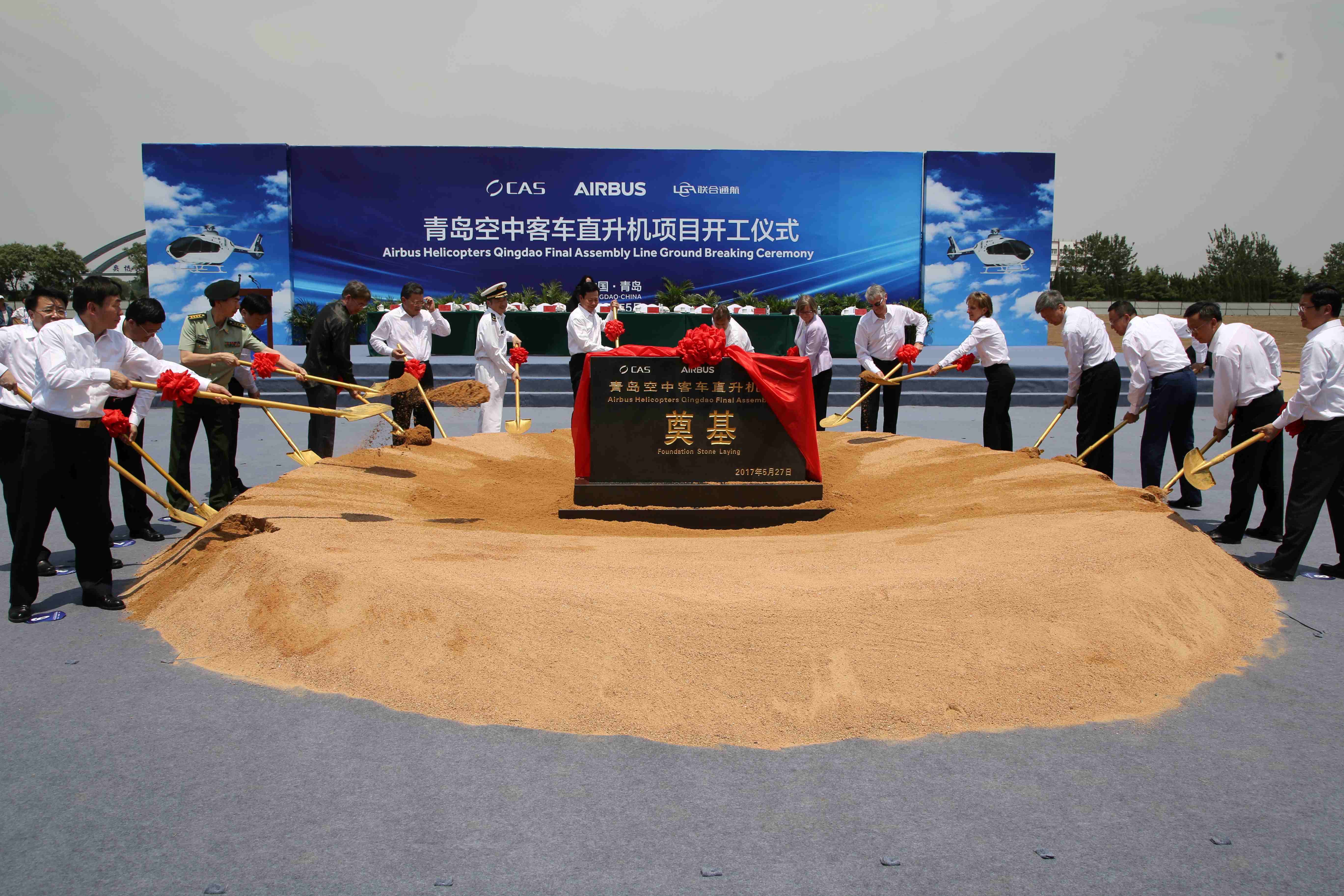5月27日上午,空中客车H135直升机项目开工仪式在青岛即墨市举行。省委常委、常务副省长李群,空客直升机集团全球首席执行官纪尧姆•傅里,北部战区海军副政委兼北部战区海军航空兵政委姜平,青岛市 5月27日上午,空中客车H135直升机项目开工仪式在青岛即墨市举行。省委常委、常务副省长李群,空客直升机集团全球首席执行官纪尧姆•傅里,北部战区海军副政委兼北部战区海军航空兵政委姜平,青岛市委副书记、市长孟凡利等出席开工仪式。