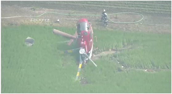 日本一直升机作业时被电线卡住坠毁 飞行员幸运存活
