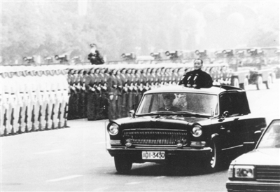 1984年国庆阅兵时邓小平乘“红旗”检阅车检阅部队