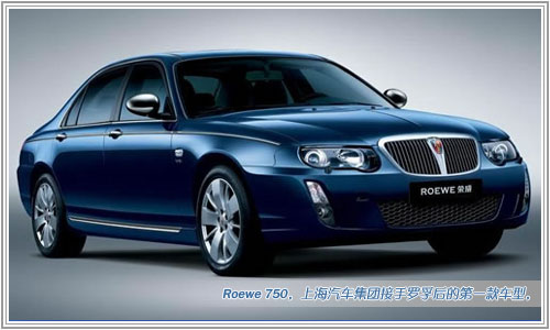2000年,宝马将罗孚倒贴给了英国凤凰财团,罗孚与MG合并成立了MG-Rover公司。 2005年4月,罗孚公司申请破产保护。 2005年7月,中国上汽和南汽联手收购了罗孚汽车。上汽拥有罗孚的品牌使用权。不过上汽在罗孚的基础上进行了修改,添加了中国元素,将罗孚更名为ROEWE荣威,荣威的标志也进行了重新设计。 “荣”有荣誉、殊荣之意;“威”含威望、威仪及尊贵地位之意。 英文命名“Roewe”,源自德语字根Loewe(狮子),并综合了多种寓意融汇而成,以“R”为首意在传达创新与尊贵之意。 新标志依然采用罗孚的盾牌外形,图案的中间是两头站立的雄师护卫着华表。华表是中华文化中的经典图腾符号,不仅蕴含了民族的威仪,同时具有高瞻远瞩,祈福社稷繁荣、和谐发展的寓意。图案下方用现代手法绘成的符号是字母“RW”的融合,是品牌名称的缩写,同时“RW”在古埃及语中亦代表狮子。此外,图案的底部为对称分割的四个红黑色块,代表了求新求变、不断创新与超越的企业意志。色彩上,新标志以红、黑、金三个主要色调构成,这是中国最经典、最具内蕴的三个色系,红色代表中国传统的热烈与喜庆,金色代表中国的富贵,黑色则象征威仪和庄重。 标识图案充分体现经典、尊贵的气质,整体形象中西合璧,包蕴自信内涵,充分阐释了上海汽车以自主掌控、自主创新的信念,传承世界先进技术,全新塑造中国的国际品牌的决心和信心。 2007年1月,ROEWE 750上市,搭载1.8T和2.5L V6打动机。