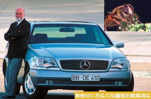 事实上,仅仅在德国,每年有44个汽车生产厂造出数以千计的新车型,可是自然界中确有近140万不同形态的生物在繁衍生息,几乎是前者的一千倍!这么多的形态中必定有很多可供汽车设计者参考的。新款的梅塞德斯-奔驰 SEC coupe的头灯看起来有点像一种常见的蜜蜂。“一点也不像”,奔驰的首席设计师Bruno Sacco否认道,“我们对昆虫没有任何兴趣,我更希望有人可以关注一下卧室里的床头。” Sacco和他的团队只希望“SEC的头灯是和整个车身浑然一体的而不是看起来是在车身完成后生硬的堆砌上去。”这是一个尴尬的事实:这个星球上有超过二百五十万种昆虫,可斯图加特设计中心的人却对此不屑一顾。而Sacco在意大利的同事乔治亚罗却将它们飞行和爬行的形态融入了自己的设计思维中:“奔驰的SEC coupe、雷诺的Twingo以及浑圆的马自达121看上去都具备某种动物的神态,”而道奇的Viper“亦如一条准备给你致命一击的毒蛇。” 同样,风格相差甚远的两辆车,灵感也许会来自同一种动物。与平尼法尼亚设计的貌似鲨鱼的法拉利275 GTB不同,克尔维特的设计者Bill Mitchell从鲨鱼饥饿的眼神中找到灵感,这来自于一次在太平洋上捕猎鲨鱼的过程,这些看起来虚无缥缈的东西,也被赫然写到了通用公司的产品档案里。