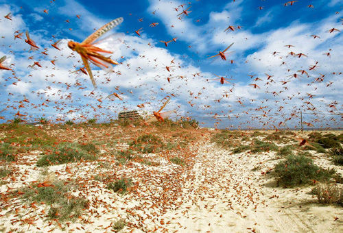 2004年,蝗虫群掠过塞内加尔。15年来,只有动用军事力量方可制止蝗灾。蝗虫群是慢慢形成的,当一对蝗虫飞过天空,就会吸引更多蝗虫与之不断地聚集,以致最终遮天蔽日。