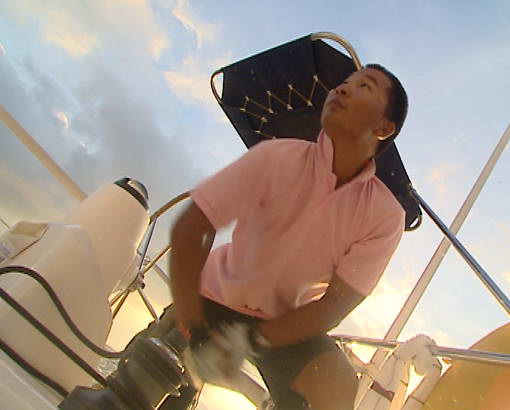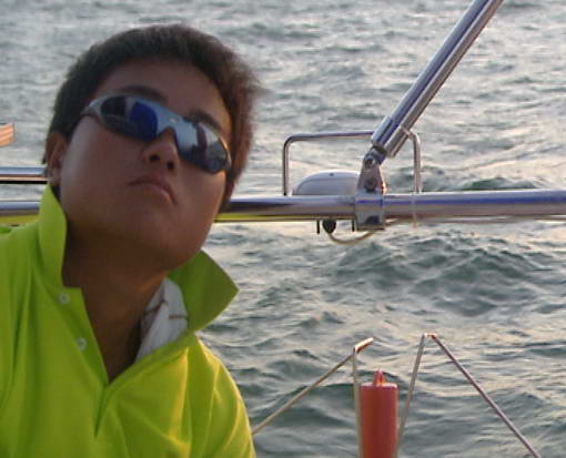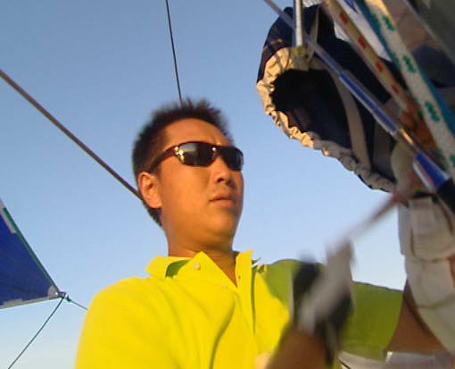 绰号小甜甜,男性,25岁,湖北人,深圳卫视随船摄制组组长,曾经历时30多天,横穿整个澳大利亚。克服了澳大利亚冬季的严寒、风餐露宿15天穿越澳洲中部荒漠区,顺利完成拍摄任务。此次扬帆万里,对他来说,又是一次具有挑战性的任务。 下图:小甜甜