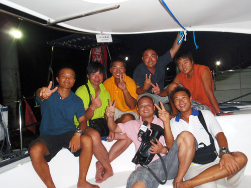 1810海里!34天航程! 从2008年7月27日深圳万科浪骑游艇会起航,到2008年8月30日抵达天津外滩公园码头,“骑士号”(也称深圳卫视号,深圳卫视冠名)4位勇敢的水手、三名深圳卫视随船记者历经台风、狂风暴雨、渔网。。。,但他们凭借真正的男人大无畏的勇气,征服了从未涉足的复杂的中国沿海海域,顺利完成了“扬帆万里”北上航程。 他们不仅勇敢面对大自然的挑战,更勇敢的面对自己内心潜在的恐惧。也克服了对亲人、对朋友的挂念。 他们,是真正的男人!是中国杯勇敢、睿智的水手! 9月5日,这些勇敢的男人即将开始大型电视航海活动《扬帆万里---纪念改革开放30周年沿海行》更加艰苦、更加挑战的南下航程。该活动是深圳卫视、中国杯帆船赛和深圳人民向中国改革开放三十年纪念活动的献礼和感恩之旅。我们的水手已整装待发,精彩航程即将演绎,现在,让我们通过他们的语言、照片来认识这些勇敢的水手。 骑士号全家福 前排:华宇龙(左)、领队米饭(右) 后排:(从左至右)船长王庆、刘甜、海带、王疆、青蛙。 比起深圳出发前,兄弟们虽然有些疲劳,但更黑、更男人!