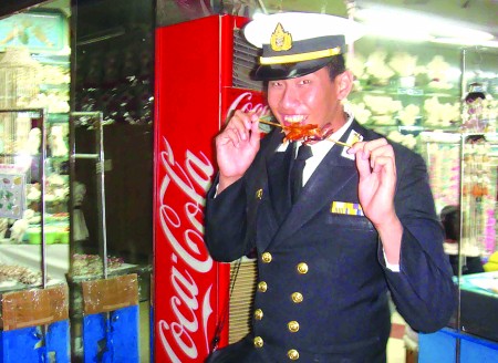 泰国水兵对青岛的铁板鱿鱼赞不绝口。张潇元 摄