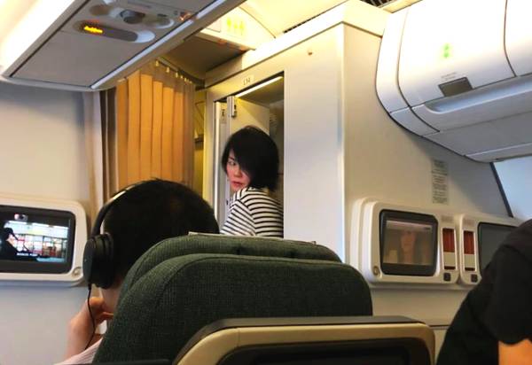 坐到凳子上以后,她打开飞机窗户遮阳板,重新戴上墨镜,还用手整理了一下自己的头发,可能是在准备飞机降落。