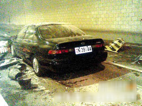 肇事轿车及惨不忍睹的事发现场。