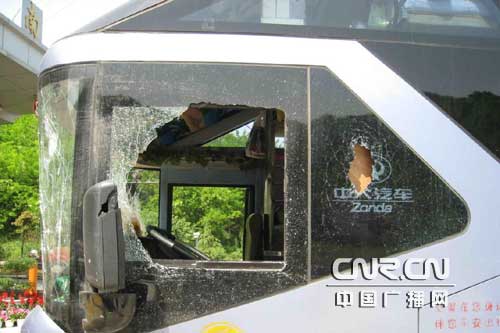 湖北客车高速路遭遇“飞石” 闯祸顽童如鸟兽散