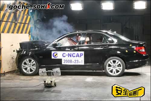 2008年10月28日下午2点,中国汽车技术研究中心碰撞实验室对北京奔驰-戴姆勒·克莱斯勒汽车有限公司生产的梅赛德斯-奔驰牌BJ7181A(C 200)型轿车(即奔驰C200K时尚型)完成了“正面100%重叠刚性壁障碰撞试验”。