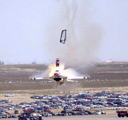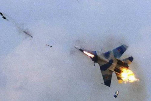 巴黎航展上那架倒霉的苏-30成了俄制弹射座椅的最佳广告,这个瞬间后舱驾驶员已经弹至画面最左侧,前舱驾驶员的弹射火箭刚刚将飞行员推出座舱