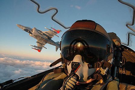 “鹞”的美国近亲,AV-8B的座舱,飞行员头顶舱盖上的白色条纹就是穿盖逃生时用于爆破玻璃的爆炸索