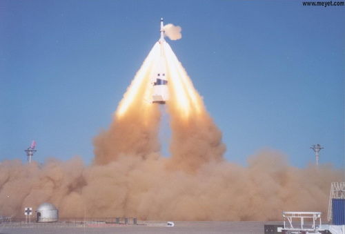 火箭牵引式逃生系统现在常用在载人航天器上,图为“神舟”飞船逃生试验