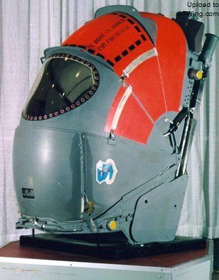 2。密闭弹射座椅。该座椅的外形与标准的弹射座椅差别不大,安装在飞机的驾驶舱内。正常飞行时,密闭门是敞开的,飞行员可以正常操纵飞机。应急时,密闭门首先关闭,把飞行员密闭起来。然后再抛掉飞机舱盖。靠火箭推力把座椅推出飞机。密闭座椅进入大气以后,首先稳定减速,接着打开降落伞;飞行员则一直坐在座椅上,安全降落后飞行员才打开密闭门离开座椅。如果在陆上降落,座椅底部的减震气囊起缓冲作用;如果在海上降落,该座椅还备有飘浮气囊,保证座椅能在海上飘浮。这种密闭式座椅只容纳一名飞行员,多座轰炸机要像配备一般座椅那样,给每个乘员各配备一个。这种密闭座椅由美国斯坦利航空公司研制。并用于B-58和×B-70轰炸机上。1963年,美国空军的爱德华·默里乘B-58飞机在6100米上空对这种装置进行了真人试验并获得成功。这种装置虽然能保护飞行员免受高速气流及高空的低压、缺氧和低温的影响而适合于高空高速救生,但它和舱盖带离弹射座椅的方法一样,存在着低空救生性能不足的缺点。据各国飞机弹射救生事故的统计表明。大量的应急弹射救生是在低空进行的,即使在上世纪60年代以来飞机的速度和升限有很大提高的情况下,仍保持着这种趋势。而密闭座椅总的救生性能还不及敞开式弹射座椅,其救生成功率的统计数仅为62%,因而在后来的新飞机设计中未被选用。