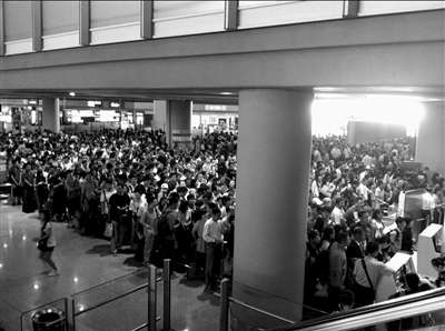 据了解,昨日,不少旅客按照往常习惯提前在网上值机,随后提前半小时赶到机场,原本以为时间正好,但到机场后他们急得双脚直跳:原想搭乘早上6点的航班,可直到上午7点还没有过安检口。