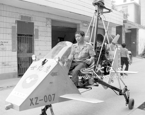 郭乐禧和他的“新世纪鹰” “首飞”的意外 郭乐禧在知天命的年纪,着实让自己在九江市星子县火了一把。原因是,他历时10个月花费4万余元制造了一架“旋翼式飞机”。 5月21日,郭乐禧在星子县城秀峰大道上第一次展示了自己造的旋翼机。顿时,这个公路上的“怪物”引得路人争相观看,局面一度失去控制,当地交通甚至堵塞长达十几分钟。 最后,在交警的指挥中,路人才慢慢散去,旋翼机第一次试跑也匆匆结束。“交警看势头不对,让我改天再试。”郭乐禧说。 旋翼机一面世就在县城引起这么大的轰动,这让郭乐禧多多少少有些意外,“三四百人,还有人听说后,特意从乡下开车过来看”。 然而,让郭乐禧更意外的是,尽管他为旋翼机的第一次试跑足足准备了近1个月,但试跑过程中,后面的轮子还是“爆胎了”。 郭乐禧并没有发现这个意外,是过路的人告知他才知道。郭乐禧说,他没听到爆胎的响声,只是在路跑的过程中,感觉飞机突然“有些不太听使唤”。 得知爆胎后,郭乐禧吓出了一身冷汗。事后,他庆幸那仅仅只是在公路上试跑,“如果飞起来,在降落的时候爆了,那就完蛋了”。 不过,郭乐禧觉得,爆胎不关乎飞机制造上的技术问题,“是轮胎的质量不行”。他乐观地认为,只要把轮胎换了,以后就不会再出现这种情况。 郭乐禧对爆胎的不以为然,却令他的小儿子郭基甸很是担心,尽管在此前,他对父亲都不怎么理睬。“不希望他再去试了,下一次还不知道会出什么事。”郭基甸忧心地说,“安全才是最重要的。” 圆梦的代价 郭乐禧对儿子的担心却表现得很不屑。“不支持我也就算了,还让别人也来反对,有什么好担心的。”郭乐禧说。 要让他停止旋翼机试飞,郭乐禧说“谁也阻止不了”。他造飞机的目的,仅仅只是为了能圆儿时的一个梦。 这个出生于星子县蛟塘镇大屋效村的农民,尽管小学还未毕业,但却早早地进入生活的角色。在10岁那年,他就觉得自己长大了应该造一架飞机。 这个梦想一直伴随着郭乐禧成长,直到去年6月份,他把经营多年的电动车店交给儿子打理,自己一心圆梦。 在此之前,郭乐禧就因为一边经商一边搞“节能汽车研发”,和家人的关系闹得很不愉快。 这一次的决定,更是让他和家里人到了“水火不相容”的地步。郭乐禧说,他作出决定后,家里人就开始不给他饭吃。为此,他对家人咆哮道:“电动车店是我的,谁敢不给我饭吃!不然,你们煮好了,我就全部倒到大街上去!” 郭乐禧为圆梦付出的代价是:和老婆分居,跟儿子分房。一个人住后,为了缓解孤独的痛苦,他只得养了一条狗。郭乐禧说,在闭门造飞机的10个月时间里,他除了到外面去购买零件之外,大部分的时间都呆在家里。 在这期间,让郭乐禧心里很不舒服的是,家里人趁他外出期间,竟把他造飞机的零件拖出去当废铁卖。 此后,邻居也开始对郭乐禧另眼相看,觉得他这是在“不务正业”,“神经有点问题”。 但这并没有影响郭乐禧对蓝天的向往,他认为自己已经没有退路,“没成功之前,人家想怎么说就怎么说”。 汽车的水温表、摩托车的油路表……靠着一边看书摸索,一边找专家请教,郭乐禧硬是用一些零碎的零件,造出了他的“旋翼式飞机”。 他为旋翼飞机取名“新世纪鹰”。 膨胀的信心 旋翼机第一次试跑,尽管出了点意外,但还是难掩郭乐禧内心的欢喜,“真的有种扬眉吐气的感觉”。 随后,九江媒体的纷沓报道,更是让郭乐禧信心大增。但九江媒体在报道郭乐禧造飞机的事迹的过程中,却隐去了飞机试跑轮子爆胎的一事。 紧接着,九江市飞行俱乐部的一些专家在看过报道后,也开始相约拜访郭乐禧。该俱乐部负责人骆耿在看过飞机后说:“郭师傅制造的‘飞机’确切地说应该叫飞行器,尽管它的构造比较简单,但它利用了喷气式发动机,这可是前所未有的。” 九江媒体在报道时,甚至引用专家的话称郭乐禧的旋翼机“将有利用价值”。 当然,骆耿在肯定过后,也对旋翼机能否飞天提出了一些质疑。骆耿表示,郭师傅终究不是专家,“飞天”肯定有很大的难度。比如,气压供油的油管该如何固定、螺旋桨的桨叶行距该如何控制以及飞机的重量超出规定等等。 面对骆耿的质疑,郭乐禧则表现得很不以为然。他反驳道:“我已经查了很多的资料,还拜访过许多造过飞机的行家,我的方案吸取了很多前人的经验,这些问题都已经解决,而且还做了很大的改进。” 郭乐禧在面对《新法制报》记者的采访时,一再强调:“只要发动机功率足够大,就一定能飞起来。” 对此,当地一位市民不无担心地说:“媒体的大肆吹捧,会让他(郭乐禧)一点点失去理性。” 日前,星子县一位官员的突然造访,更是让郭乐禧飞天的信心膨胀到了极点。事后,郭乐禧才得知,这位官员就是星子县委书记潘熙宁,随行的还有星子县科技局局长王琴。 王琴告诉《新法制报》记者,潘书记在看过郭乐禧造的飞机后,对他的精神大加赞赏,并表示“应该鼓励”。但王琴表示,郭乐禧造的飞机到底有多少科学性,“现在还不好说,还得专家去鉴定”。 但可以肯定的是,潘书记一行的造访,更加坚定了郭乐禧飞天的信心。“等下个月再来,你们就知道了。”郭乐禧信心十足地说。 郭乐禧对他造的旋翼机可以飞天深信不疑,他甚至开始憧憬着他的旋翼机未来的出路。他告诉记者,他的飞机一旦“飞天”成功,用途将非常广泛。比如农用播种、喷