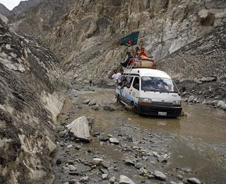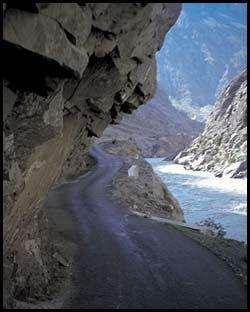 巴基斯坦和中国边界处 喀喇昆仑公路 位置:巴基斯坦境内喀喇昆仑山 惊险度:这是一条很有名的旅游道路,海拔达16000米,全长800英里,沿途经过溪流或是干旱地面,司机极易患高原病。
