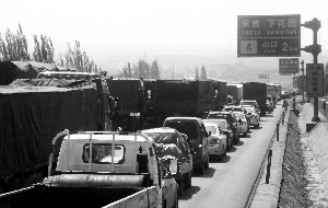 昨日,京新高速翼京界主线收费站进京方向恢复正常通行。 昨日,河北省张家口进京方向的京张、京新高速,在暴堵持续20余天后,终于疏通。6月2日起,京张、京新高速进京方向开始拥堵,最严重时,在张家口境内滞留车流长达数十公里。 遇堵 车载水果全变蔫 6月2日起,京张、京新高速进京方向,数千辆大货车首尾相接。偶尔,在交警全力疏导下,车流会缓慢“爬行”一段距离,但不久便再次被迫停下,寸步难行。据河北省公安部门统计,6月初大塞车发生后,京张高速每天滞留大货车7000多辆。 “堵个两三天很正常。”很多司机介绍,中午时,驾驶室内有30℃,不少人热得脱去衣服就剩内裤。还有的在车里实在熬不住了,干脆下车找几个同行打扑克。 一位司机称,几天前他拉水果经过京张高速时,堵了将近一天,“那天气温很高,出发时新鲜的水果,全被晒得发蔫了,有的都要烂了。” 而在京新高速路上,被堵的大多数是运煤车。一位司机坦言,堵车增加了运输成本,“本来费用是6000多,这一堵,会多出1000多块钱。” 疏堵 上百交警全天值守 据了解,为应对暴堵,河北省省委书记、省长专门做出批示。张家口市多部门成立张家口地区进京道路疏堵保畅联合指挥部(以下简称指挥部)。一位具体执行的负责人说,他们派出上百名交警到现场24小时值守,随时掌握情况,调度车辆通行。对于装载鲜活农产品的运输车,优先放行。在有桥梁的路段,路政部门的人员不间断在桥上巡逻,防止重型货车过多,引发桥梁垮塌事故。 指挥部相关负责人表示,经多方努力,张家口地区进京道路昨日首现畅通。 畅通 两车间距超200米 昨日中午,记者驱车沿京张高速向张家口方向行驶了数十公里,沿途看到对面的进京方向道路畅通无阻,有时前后车辆间距甚至超过200米。 由京张高速转入京新高速,再行进20多公里,直至110国道的数公里内,车流均正常行驶。昨日13时许,近2个小时内,京新高速冀京界主线收费站旁,排队通过的车辆最多时不超过7辆。 特写 交警半夜挨车敲醒司机前行 “终于通了。”昨天,河北省公安厅高速公路交警总队六支队北辛堡大队教导员刘洪杰长出了一口气,高速暴堵20多天,六支队几乎所有交警没有休息一天。 “连轴转是常有的事儿。”刘洪杰说,疏堵保畅考验着每一位交警的体力与耐力。 白天,拥堵路段,几乎每隔几百米,就有交警或警车待命。虽然沿路有趁机高价叫卖食品的小贩,但仍不能满足几千名司机的饮食。为此,北辛堡大队联系了附近的售货服务区,让他们派人带上矿泉水、方便面,进入车流卖货,碗装方便面4元钱一个,价格比小贩卖得低很多。 “晚上最熬人。”刘洪杰说,司机可以在车里睡觉,可交警们不能,他们需要随时盯着前方道路的疏通情况,一旦前方出现空当,要马上叫醒司机们前行。 “十多公里,近千辆车,叫他们都停下,容易;可从睡梦中叫他们前行,特别难。”刘洪杰介绍,从第一辆车启动,到末尾的车跟上,有时需要六七个小时,交警们晚上怕鸣警笛打扰附近村民休息,只能一辆一辆地走到车旁,敲车门,整夜为司机们提供叫醒服务。 原因1 入口狭窄成通行瓶颈 河北省高速交警总队负责人认为,京新高速久堵不畅的根本原因,是北京市西北入口狭窄,与塞外高速路网对接处严重梗阻。从内蒙古、山西来的车辆进入河北后,会与张家口本地的车辆合流,一起由京张(京藏高速)、京新高速公路进京,但进入北京境内后,只能一起挤进仅有双向4车道的窄路排队等候通过。 该负责人说,特别是最近,随着内蒙古煤田的开发,那里来的运煤车,都集中在此进京,造成高速公路压力陡增。 原因2 4桥施工致前行不畅 沿京新高速进入北京段,大部分货车均驶入了110国道,而6月2日,110国道延庆县境内的高庙屯1号桥等4座桥梁开始维修施工,相关部门对进出京车辆进行交错控制。指挥部一负责人认为,4座桥同时施工,给110国道带来通行压力,京张高速堵车与此也有一定关系。 维修施工方北京市政路桥养护集团相关负责人表示,统计数据显示,施工期间的日交通量为1.1万至1.2万辆,与平日相比,受影响的车辆不超1000辆。 该负责人说,工程原计划工期为47天,但考虑到110国道的交通压力,“我们24小时不间断施工,压缩工期。”据悉,该工程已于6月21日完工,目前,施工路段已恢复正常通行。 一位在京新高速工作的交警证实,多条公路从张家口到北京,形成漏斗形,成为交通运输的瓶颈。 原因3 端午小长假车辆骤增 指挥部一负责人说,京新高速主要是承担货运车辆的通行,但端午小长假前后,出入京的旅游车、私家车骤增。也使那几天的交通拥堵变得严重。 经相关人员调查统计,端午小长假后,途经张家口地区的旅游车和私家车减少了二成至三成,在一定程度上减轻了进京道路路面通行的压力。 指挥部负责人也表示,进京车辆波峰、波谷流量日差约有2000至3000辆,目前流量正处在低谷,这也是昨日高速路恢复畅通的一个原因。 原因4 超载检测或影响通行 根据北京市规定,张家口方向来车,在京张高速进京方向将分为两类:4吨以下的车辆可继续行驶,走八达岭高速进京。而4吨以上的货车,只能走京新高速,最终驶入110国道京银路。这意味着大多数载重较多的货车,如要从西进京,只能走京新高速,且须接受超载检查。 京新高速进京路段,约有4个超限超载监测站。昨日15时,下营检测站内,一位男工作人员说,目前,接受检测的车