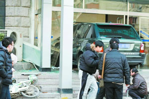 昨天下午4时许,北三环安华桥西北角的瑞德大厦门前一片狼藉。一辆原本要停车入位的路虎越野车,撞进了大厦门厅左侧的玻璃门。正在门前执勤的保安反应迅速,才躲开了这只“疯狂”的“老虎”。 ![]() 昨天下午4时许,记者赶到现场时,路虎还停在事发地点,被撞烂的桌椅周围尽是碎玻璃,一台空调被直接从侧面的窗户顶了出去。距离路虎后门不远的地面上,还留有些许血迹。看到现场的情况,围观的人都替在门口执勤的保安捏了把汗。据大厦保安队长回忆,执勤保安30岁上下,路虎车冲过来时,他下意识地往后跳了一小步,否则后果不堪设想。 据目击者描述,昨天下午3时40分左右,这辆绿色的路虎车正准备停进瑞德大厦门前的一个车位。可就在这时,路虎车突然加速,对着大厦门厅左侧的玻璃门呼啸而去。玻璃门前摆放着桌椅,此时,执勤保安正站在桌边写东西。听到声响,这名保安下意识地往后一跳,这一跳让他刚好躲开了撞进来的路虎。随着巨大的撞击声,路虎最终停在了距离大厦内墙面仅几十厘米的地方。 “开车的是个女司机,事发后她打开后门取了包,跟没事人似地走了……那个险些被撞的保安从碎玻璃堆里爬了起来,等他缓过神儿来,才发现自己脸上手上都是血……”事发时,王先生恰巧途经此地,想起当时的场景仍心有余悸。据大厦楼内的工作人员称,这辆路虎在这里有好几年了,车经常停在大厦正门对着的车位,开车的女司机好像是某公司的老板。 事发后,受伤的保安被送往医院进行检查。据介绍,该名保安脸部、手部受伤,其他部位伤势仍需观察,目前没有生命危险。保险公司、交警也先后到场,路虎车被小心翼翼地倒下台阶。据警方表示,司机很可能是错把油门当成了刹车。目前,事故原因仍在调查中。 |