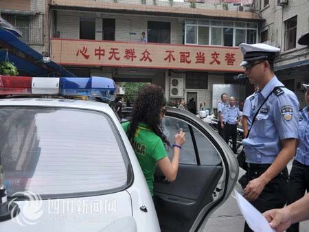 当记者在成都市交警四分局见到爆炸头,穿白色吊带衫、牛仔短裤的刘梅时,刘梅一直称自己并没有喝酒。