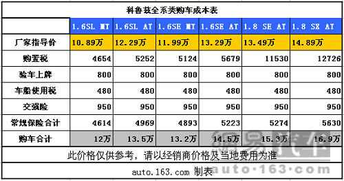 网易汽车报道 相信大家对米勒主演的科鲁兹广告don't worry I'm on my way还记忆犹新,在逃跑过程中巧妙的展示了科鲁兹良好操控和动力。科鲁兹是雪佛兰全球的重要战略车型,通用借助全球的设计平台,综合了多项先进科技,打造的一款紧凑型的轿车。全系售价区间为10.89万-14.89万。科鲁兹和最近热热闹闹的“大黄蜂”camaro同属雪弗兰门下,被网友们戏称“小黄蜂”闲话少叙,下面以一年行驶两万公里为例,给大家简单的介绍一下科鲁兹一年的用车成本,为您做一个参考。 一、购车成本,动力首推1.6配置首推SE 购车费用常用公式:购车费用公式=裸车价(厂商指导价)+购置税+上牌费+商业保险+交强险+车船使用税 购置附加税:购车款/23.4(1.6升及以下);购车款/11.7(1.6升以上)1.6升以下排量的车型,购置税会得到减半的优惠政策。 验车上牌:此价格仅供参考,具体价格以各地验车上牌价格为准。 车船使用税:各省不统一,北京9座以下客车为480元/年,9座以上客车540元/年。 贷款买车的具体月供额,可到当地的4S店查询。 二、保养和维修继承属于中上等水平,6万公里保养费总计5000余元 科鲁兹这款车前两次的保养服务是免费的,第一次保养是在车辆行驶2000公里或者1个月的时候进行,主要是检查车辆的油液和基本情况。第二次保养是在车辆行驶5000公里或者半年的时候进行,第二次保养主要是进行更换机油机滤,并进行相关零件的检查以及油液的补充。在做完这两次免费保养后车主以后每次保养的时间是在车辆每行驶5000公里后进行,每次保养的里程和保养项目的费用参见下表: 上海通用雪弗兰给科鲁兹提供2年或者6万公里的整车质保,自动挡和手动挡车型在保养费用上会略有不同,基本上6万公里的质保期内消费者在保养车辆上的花费为5184.2元。从北京地区进行的4S店获悉1.6L和1.8L科鲁兹在保养费用相同。其他地区的雪佛兰4S店可能因为工时费用上的不同而造成保养价格上的差异。 三、油耗费用油耗尚可最低7.3L/100km 根据国家工信部公布的《乘用车燃料消耗量》中科鲁兹的综合工况油耗数据是:1.6手动挡:7.30L,1.6自动挡:8.20L,1.8自动挡:8.40L。区别于厂家公布的等速油耗,《乘用车燃料消耗量》是国家工信部以官方的形式客观对市场销售车型通过标准化实验所得来的数据,具有一定得权威性。但是,因为个人驾驶习惯和驾驶环境的问题,在实际使用过程中还会有出入。北京地区93号汽油的最新价格为6.19元/升,按照一年行驶2万公里计算,可以得到燃油费为: 综合以上费用,科鲁兹 1.6L自动档一年用车成本为:燃油费+车险+车船使用税+保养费+意外支出=10151.6+6173+480+1728+1200=19732.6元。平均每月约1644元。 |