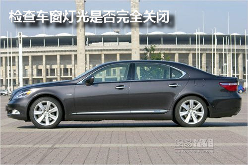 长时间停驶一定要检查灯光和门窗是否完全关闭,防止融化的雪水或是雨水进入车内,引起棉麻制品或是地毯霉烂。