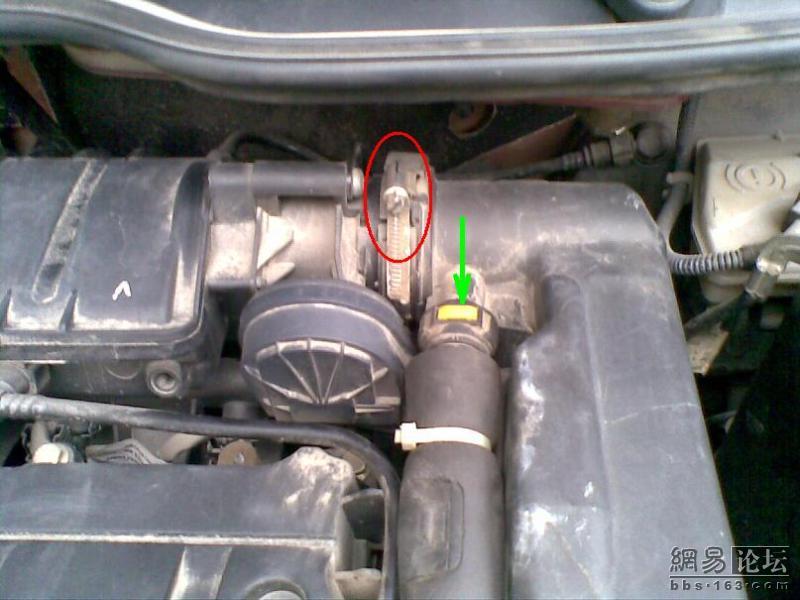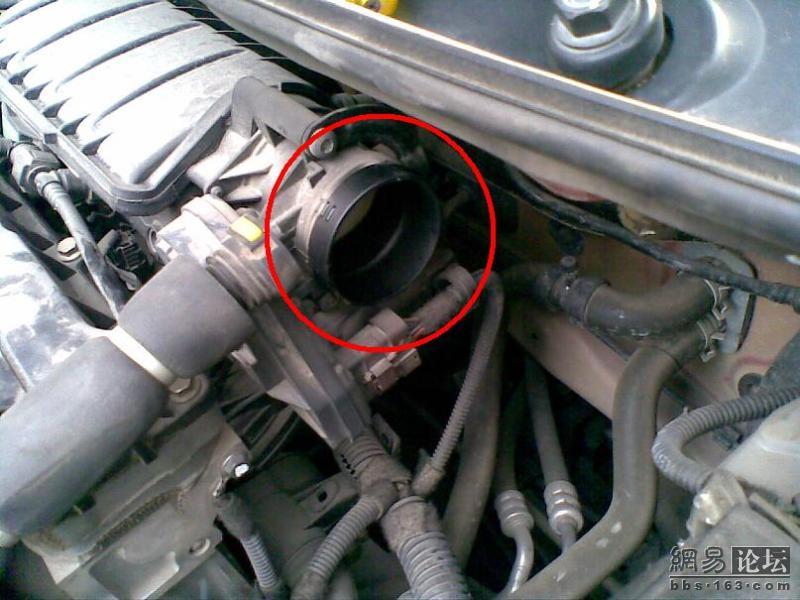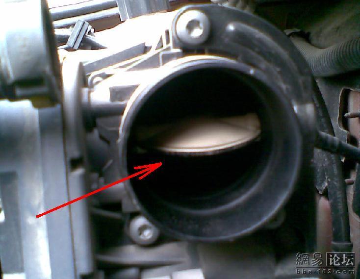 把钥匙插上,拧到II档(就是仪表盘上灯都亮的那档),千万不要打火哦!!!找人坐在车上将油门踏板踩到底或者用个什么东西把油门踏板卡住,这时候节气门就是打到最大开度,我左看右看也没看出来什么。想必如果有个手电筒,应该能进一步看到里面的内容。