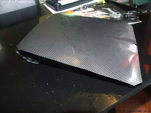 自从发了http://club.autohome.com.cn/bbs/thread-c-577-2499870-1.html这篇帖子之后,很多朋友PM我介绍一下贴膜的方法,借此文统一回复各位的问题。下面给大家展示的是最基本的处理方法和技巧,希望对大家有帮助。 首先,准备好工具,非常简单 ![]() 中国名牌张小泉剪刀旁边的一根针,其作用在后面会提到。在工具的选择上需要注意质量,生锈的刀片是无法做出完美的效果的。另外,还有一个很重要的东西上图没有展示出来——准备好足够的耐心。 接下来是一卷碳纤纹的贴纸,一般来说30-40元/米是街价。需要具有良好的伸缩性和粘贴性能,谁都不想见到贴了几天就会翘起来的效果。 ![]() 下面是我们要贴的对象,S-MAX的前杂物箱,难度中等,有不少规则的阴阳角位。 ![]() 裁出一张大小差不多的贴膜,这里不需要精确度,差不多就行,注意留出折边的空间 ![]() 将顶盖放置在底纸上,用笔绘出实物的投影,遵循宁多勿少的原则,注意中间的箭头标记,贴的时候用来和被贴物体的中线对正,这样纹路就不会歪。再以投影边界向外扩展10mm左右,这是折边的空间。可以用直尺划线,方便剪裁,遇到阳角位就改成钝角。 ![]() 裁出来,记住将刚才做中心标记的地方剪出来。下面这幅图并没有这样做,这是我的疏忽 ![]() 用喷壶将顶盖整个喷湿,注意要使用含有乳化剂的水,这样水具有更好散布效果。我使用的是洗洁精加自来水。 ![]() 撕去底纸,同样全部喷湿,不留任何干的地方 ![]() 把贴纸放上,由于有水的阻隔,不干胶现在还不能发挥作用,所以贴纸可以在表面上任意移动。注意两头的切角,把它们和物件的中心对正,我们把这一步叫作预贴。 ![]() 对好位置以后,用风筒的低档将贴纸轻微加热,将正反面的水分去掉一半。这时贴纸开始产生粘性,对位工作要在这一步完成,之后就不能再移动的了。 ![]() 吹干到这个程度,由于受热变软,外面没有贴到的地方,贴纸开是呈现出物体的边缘。这时贴纸应该不能被推动。 ![]() 反过来,用风筒将刚才挤出在边缘的水分吹干,但注意不要太热。可以看到刚才的切角应该正对物体的中线 ![]() 从最长的直线开始,用风筒的高档将边缘吹软之后,用手将其折下并按紧,使其紧贴物体的边缘。 ![]() 这是一个错误的例子,阳角位应该按照从左到右或者右到左的方法处理,同时向一个方向收边肯定做不好的, ![]() 下面几幅图是连续展示多个阴阳角的处理方法,并不复杂,好好体会一下就能明白 ![]() ![]() ![]() ![]() ![]() ![]() ![]() ![]() ![]() 这个是底框的预贴 ![]() 底框上的弹出按钮,我把它保留为原样,跟贴膜的表面有不同的手感,方便在黑暗中操作 ![]() 一眨眼就搞好了,实际上我用3小时 ![]() ![]() 装回原位 ![]() 跟中控面板是不是很衬呢?哈哈 ![]() 结束语: 前面提到那根针的作用,由于在折边的工序里面一直需要使用风筒的高档对边缘进行加热,会发现有些地方会慢慢鼓起一个小泡,那是残留的水分受热之后变成水蒸汽引起的,可以用针在上面扎个小洞将水气排出即可。本人历来不说废话,希望本文对贴膜感兴趣的各位有所帮助。欢迎交流! |