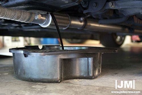 第二步:在油底壳下方放置旧油容器,找到油底壳的放油螺栓,慢慢拧开放油螺栓,小心不要接触到热油。让机油多滴下一段时间。检查放油螺栓,重新安装放油螺栓,注意不要将螺栓拧的过紧,防止油底壳损坏。