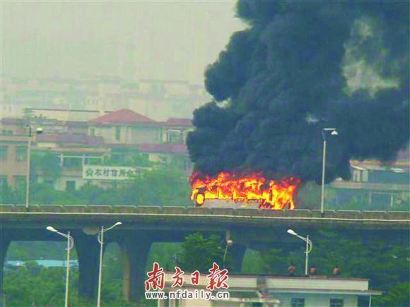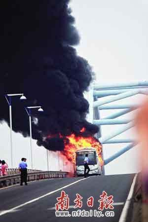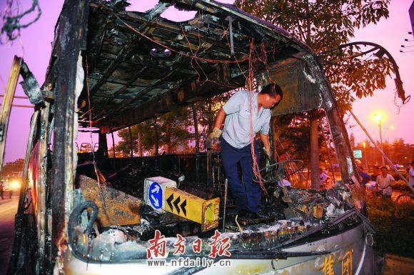 “让开,快让开!”昨日下午5时50分许,一辆从广州番禺开往佛山汽车站的班车,途经佛陈大桥时突然冒烟起火,司机和37名乘客第一时间疏散转移。但处在一片火海中的班车随即快速滑行,直飙下桥,一名巡警为阻止班车撞车撞人,当即开警车迎面冲了上去,被推着撞开。班车飙行约1公里后撞上花基而停,烧得只剩下骨架。 “那场面真像演电影” 佛陈大桥顺德往禅城方向,下桥后是魁奇路与南海大道交界的十字路口。现场围观的一男市民用手机拍下事发过程。记者看到,事发班车明火冲上高空好几米,浓烟冲了一二十米高,空中黑压压一片,当时车停在桥上,突然开始滑行。 “那场面真像演电影。”该目击者称,当时他看到班车从桥顶快速滑行下桥,警笛声响起,民警紧张地在疏导交通,阻止车辆和行人通行,他赶紧跑到一旁去拍摄。班车继续冲下桥,并右转弯冲到南海大道中,火很大,冲上绿化带才停下,“很多市民吓得躲在一边”。 事发班车是从番禺市桥开往佛山汽车站的,发车时间是昨天下午5点20分。乘客赵先生说,车上有30多人,并没有坐满。车子途经大桥桥顶时,尾部突然冒烟。他坐在后排位置,闻到一股焦味,回头一看,见冒烟,赶紧喊叫司机停车。 司机称车是自燃 “司机马上就刹停车,打开车门,叫大家赶紧下车撤离。”赵先生说,司机自己则没有跑开,当即拿起灭火器朝起火的车尾喷,还赶紧叫其他车辆和行人不要靠近。 乘客梁女士称,刚开始,车只是冒烟,但过了两三分钟后就起火了,越来越大,整个车变成了“火车”。当时车停在桥上,仅过了几分钟后,车突然开始滑行,往桥下冲。 对于事发原因,班车男司机只说是自燃导致。现场很多市民都发出一个疑问:车都停下来了,为何还会启动冲下桥?一名资深司机称,据他了解,这种车没有手刹,可能是火烧坏了气刹管,导致滑行。 巡警受伤无大碍 昨晚7时20分许,佛山市一医院急症室内,英勇开车撞阻起火班车滑行而受伤的巡警卢绍毅刚做完检查,准备离院。医生说,被撞后,他出现了轻微脑震荡症状。 卢绍毅是佛山巡警二大队二中队民警。据探望他的上司称,昨日下午5时50分许,他们接到该起报警,说桥上有辆班车着大火,事态严重,两辆在附近巡逻的警车5分钟内赶至。卢绍毅当时开车冲在最前面,见班车在快速滑行,遂冒着生命危险,在最关键的时刻,逆行迎面冲撞过去,想把班车阻挡住,结果自己被撞伤。 对话 英勇巡警:情况太紧急,来不及想危险 昨天记者采访了卢绍毅。当时的情景是怎样的?卢绍毅为何要不顾一切撞车阻挡?卢绍毅描述了当时的情景,也许能还原现场和明白他当时的举动。 记者(以下简称记):你赶到现场时,看到了什么? 卢绍毅(以下简称卢):当时远远就看见那车在桥顶处燃烧,一片火海,浓烟滚滚冲上高空。桥下有个十字路口,很多车辆、行人在通行,为了安全起见,有同事赶紧进行疏散。 记:你怎么会第一时间用警车去撞班车? 卢:我逆行冲上桥,当时班车滑行并不明显,但距离其20米左右时,看到班车滑行起来,越滑越快飙了下来,想到桥下路边还有通行车辆和行人,我就迎面撞了上去,想顶住它,让它停下来。 记:当时有没有想过这样做会有危险?可能会爆炸啊。 卢:情况太紧急,什么都来不及想,根本就没有想过是否会爆炸以及能否顶得住的问题。 记:撞上去后发生了什么? 卢:“嘭”的一声,班车当时缓停了一下,我赶紧跳下车。由于班车车身重又是下桥坡,它推着我的车滑行三五米后,把我的车撞去旁边的车道上,随后又继续快速滑行,可能是被我的车顶偏了方向,下桥后,右拐冲到了南海大道上,冲了几百米冲上花基上才停下,依然在燃烧。 记:警车上还有其他同事吗?当时是否知道自己受伤了? 卢:没有,就我一个人。看到班车冲下去,我也跟着班车追,并大声喊着“让开”,生怕班车撞到车辆和行人,那后果不堪设想。当时不知道自己受伤了,看到班车没有撞到别人停了下来,我才松了口气,并发觉自己有点头晕。 记:有市民说,班车着火冲了有1公里远? 卢:绝对有。我撞上去后,班车缓冲了一下,否则可能冲更远。 记:现场很多市民都说你是英雄民警,你怎么看? 卢:这是本职工作。(一旁的上司肯定地说:是的) |