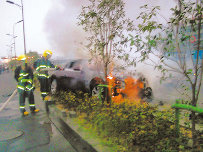 |  良渚消防中队出动7名消防官兵和一辆重型水罐车,为豪华车玛莎拉蒂灭火。通讯员 江建波 摄  烧毁的车零件随手可以拎起。 4S店做完油漆出来冲上绿化带后起火 200万元玛莎拉蒂烧得只剩铁壳 海王“波赛东”的三叉戟折戟了,这件有些让人惊讶的事,发生在昨天下午5点40分左右,杭州良渚镇巨州路往杭宁高速方向。 事发前不到10分钟,余姚人俞先生刚从好运路上的“玛莎拉蒂”(标志为海王波赛东的三叉戟,记者注)4S店里开车出来,没想到,车子行驶到巨州路金恒德汽配物流中心附近路段时,突然冲上绿化隔离带,撞断了直径约20厘米的交通信号灯铁杆,随即车子起火。几分钟后,这辆酒红色的价值200多万元的“玛莎拉蒂”GT跑车,毁于一旦。 直径20厘米信号灯杆被撞断 晚上记者赶到事发地,这里距好运路上的“玛莎拉蒂”4S店约3公里路程。 连根折断并倒在路边绿化带中央的“曝闪”信号灯,闪烁着红蓝色灯光。装着信号灯的铁杆约20厘米粗,距离原来的位置,已向前移动了约10米远。是当时被车撞断,飞出那么远,还是后来有人移动过?这些记者暂不得知。 借助路灯光,现场依然清晰可见。空气里还残留着焦糊味,满地的水迹、油污及“玛莎拉蒂”各类零部件碎片,混作一团。 车子烧毁后,被良渚交警中队拉到了莫干山路浙江交通职业技术学校附近的杭州余杭瓶窑道路清障服务中心停车场。 “是有这么一辆车,烧得不成模样了。不过现在晚了,不能进去看,明天早上再说吧。”门卫没有答应记者想到里面拍照的请求。 刚做完油漆开出不久出事 价值200多万元的车被烧毁,这恐怕是杭州有史以来烧毁的最昂贵的一辆车了。 两三天前,俞先生将自己这辆爱车开到4S店,做了“前保”以及车尾“叶子板”的油漆,且更换了其中一扇车门的“裙边”。 据知情者透露,俞先生的这辆车,前段时间借给朋友开时,发生了一些小擦碰,之后来到4S店询问过做油漆的价格,但因价格有些高,所以当时没给车做,而是找了一家汽修店做了油漆。但因汽修店做的油漆成色与车子本身的酒红色相差较大,于是俞先生决定,重返4S店维修。 两三天以后,车子修好了。昨天下午,俞先生和一位朋友赶到4S店取车,朋友开的是一辆越野车。 “取车时,他还在4S店的场地里来回试驾了好几回,感觉没什么异样后,就将车取走了。”知情者说,车子取走后没多久,4S店接到了俞先生的电话:“车子起火了!你们赶快拿几个灭火器过来灭火。” 70%被烧毁基本报废 时间回到事发前的一刹那。据了解,当时的情况是这样的: 俞先生开着车,从好运路4S店出来,沿巨州路,准备上杭宁高速回余姚。 就在快到高速口时,行驶在俞先生前面的一辆大货车突然一个急刹车。俞先生车速有点快,跟得比较紧,待他连忙踩刹车时,正好后车轮轧过路面的一个窨井盖,盖面光滑,车轮抓地没抓稳,发生打滑,车头侧甩,直接冲上了绿化带,撞断了信号灯杆。 气囊随即弹开,俞先生没有受伤,但他发现引擎盖开始冒烟,连忙拿上包,逃了出来。 很快,引擎盖里喷出火苗来。俞先生忙拦过往车辆,想借灭火器,但没有车停下来。 无奈,俞先生只好拨119、110及4S店的电话。 4S店接到俞先生的电话后,七八个汽车修理工,人手一个灭火器,开着店里的一辆“依维柯”赶往现场。路上,因俞先生的车发生车祸,发生了堵车,一行人跑了四五百米,才赶到现场。 可惜晚了,大火已将车整个吞没。那时候,消防还没赶到,4S店工作人员准备用灭火器灭火时,俞先生连连摇头摆手说算了。结果4S店一个灭火器也没用上。 车子的保险可能有些问题 晚上8点20分,记者来到“玛莎拉蒂”4S店。门卫室有人值班,是4S店一名汽车技师,他不愿透露姓名,也不愿多说。 “我们到的时候,火已很大了。后来消防赶到,灭了火。”他说,车子尾部烧得不算厉害,前脸、发动机以及内饰全被烧了,估计整车有70%被烧毁,基本报废,“要是起火当时,有人能及时提供灭火器灭火,估计车损不会那么严重,太可惜了。” 这位技师分析,可能车子受到剧烈撞击后,导致油管断裂,撞击时擦出的火星,引燃了油管。“幸好油箱没被引燃。”他说。 有目击者称,车主是一个20来岁的小伙子,后来上了朋友的车,估计回余姚去了。不过,这位目击者听说,这车保险上可能有些问题。“不知道是没投保还是保险过期了,只是听到4S店的一个人在问车主保险的事,要是这车没保险,那可真叫惨了。” 目前,余杭良渚交警中队还在对事故原因做进一步调查。 |
