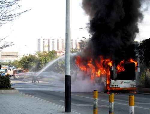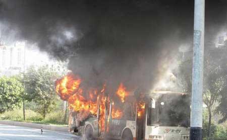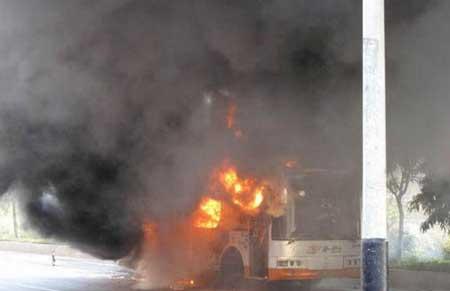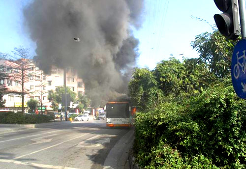 广州一辆公交车起火 浓烟几百米高[组图]