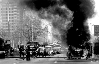 本报讯(记者王丽娜)昨天中午12点半左右,在南三环西向东主路上,一辆银色菲亚特轿车自燃,事故造成南三环拥堵20分钟左右。 当时,鲁先生驾车行驶在木樨园桥西,车子突然熄火。“车前部冒烟了,火苗从发动机那儿往上蹿”。他下车取出灭火器,对着车一阵乱喷。火苗越来越大,附近的交警发现后,让鲁先生远离事故车,并暂时封锁道路。丰台消防支队接警赶到后,迅速将火扑灭,车子被烧得只剩下黑漆漆的车框。 “幸好人没事。”因未上自燃险,不能得到赔偿,鲁先生叹了声气说:“一会儿就着了我近10万啊。” 《京华时报》 (2009-01-11 第007版) |
