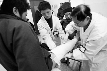 截至17时30分,积水潭医院共有24人摔伤就诊,值班大夫介绍:“今天摔伤患者占到了急诊的90%,而平时急诊患者中40%到50%是车祸患者,摔伤只占到30%左右。雪后摔伤的患者大部分是腕关节、踝关节和髋部,50岁以上的中老年人居多。根据以往经验,雪化时更要防摔伤。” 冬季摔伤常见 掌握紧急处理 随着冬季的到来,人们都穿起了厚衣服,加上天气寒冷等原因,关节变得较为僵硬,行动也远不如夏秋季节灵活方便,摔伤、拉伤、扭伤的现象(“三伤”)也逐渐多了起来。尤其是遇到下雪或雪后,“三伤”患者更是明显增加。那么,如何更好地保护自己,免受这些意外的伤害?一旦受伤,又如何正确处置呢? 专家指出,冬季意外“三伤”,主要受伤部位是腕关节、髋关节周围组织及关节本身的拉伤、骨折,严重者还包括腰椎、脊椎受到意外压迫造成的骨折。 “江湖接骨”莫轻信 冬季由于气温较低,人的反应能力有所下降,外出活动时,一是要做好充分的准备。二是活动中要注意适度。三是过于危险的活动要尽量少做。 如果不幸受到伤害,也不要过于惊慌。 首先要判断伤情,是开放型伤口(有破口的),还是非开放型的。是否有皮下淤血,关节功能是否受到影响,局部是否出现肢体畸形,关节活动是否受到影响。 第二步是及时采取有效的急救。如果是开放型伤口,不论伤口大小,必须送医院进行治疗,并注射破伤风抗毒素。医务人员到来前,要及时止血,有条件的,可用消毒后的纱布包扎;如果没有条件,可用干净的布对伤口进行包扎,然后迅速送医院进行治疗。对于此类受伤,6~8小时是处理缝合伤口的最佳时机,千万不能耽误。如果摔伤的同时有异物刺入,切忌不要自行拔除,要保持异物与身体相对固定,送医院进行处理。如果没有出现开放型的伤口,也不要自行或让非医务人员揉、捏、掰、拉,应该等急救医生赶到或到医院后让医务人员进行处理。尤其值得注意的是,如果受伤现场没有其他人,一定要呼叫急救人员前来救治,切不可自己坚持,这样,很可能出现继发伤。正确的方法是,让受伤部位制动,等待急救人员到来。还有一点值得注意,有时自己感到受伤很轻,往往不去医院,这一点也是不可取的。事实上,有些伤,自己的感觉并不是十分准确,正确方法是即使感到伤不重,也应到医院进行检查。受伤初期如果出现肿胀,可以用冰块或冷水进行冷敷,只有到恢复期以后,方可热敷。 所有意外受伤,都不要自行在伤处涂抹有色的消毒剂(如碘酒等),否则会影响医生判断伤情。