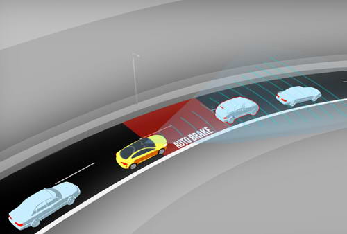 与普通巡航系统不同,自适应巡航系统能自动锁定前车车速,随前车加速而加速,当然,前车减速也会随之减速。驾驶人员完全可以将脚从踏板上移开,只要关注于方向盘即可,能大幅降低长途驾驶所带来的疲劳。该系统最适合车队行驶,只要头车控制好车速,后面的车辆基本不用为驾驶而操心。不过,目前出现在国内的自适应系统只能“自适应刹车”,而不能“自适应加速”,功能还有待进一步完善。