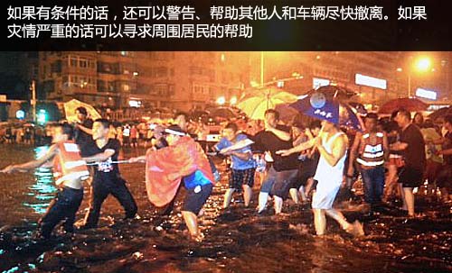 如果有条件的话,还可以警告、帮助其他人和车辆尽快撤离。如果灾情严重的话可以寻求周围居民的帮助。