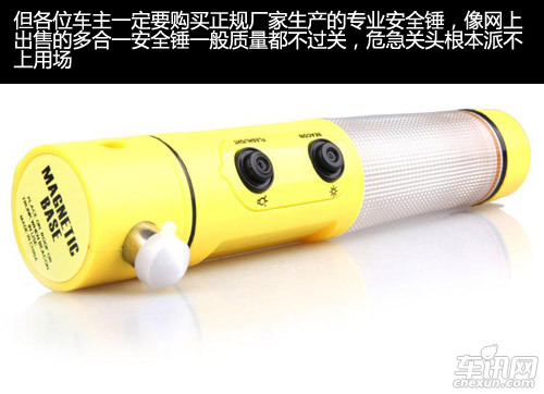 但车主们一定要购买正规厂家生产的专业安全锤,像网上出售的那种多合一安全锤一般质量都不过关,危急关头根本派不上用场。另外,司机们还要把它存放在容易取到的地方,在发生车内出现火灾或汽车落入水中等紧急情况下,可以方便取出并砸碎玻璃窗门以顺利逃生。