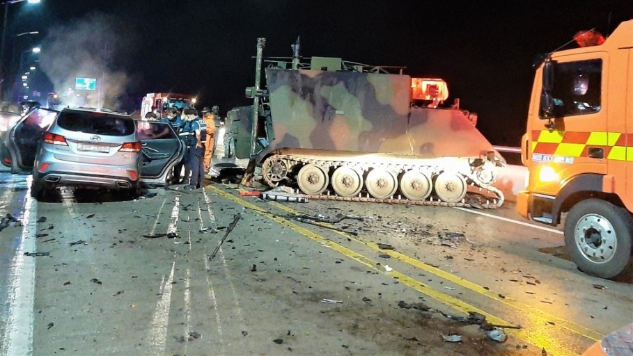 韩国私家车撞美军装甲车 调查公布:平民司机酒驾 时速100公里