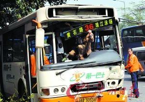 广州两公交疑斗气追逐 追尾致40乘客受伤(图)