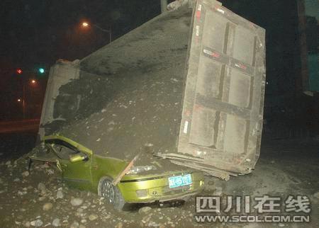 大货车砂石倾泻掩埋轿车 4人当场死亡(组图)