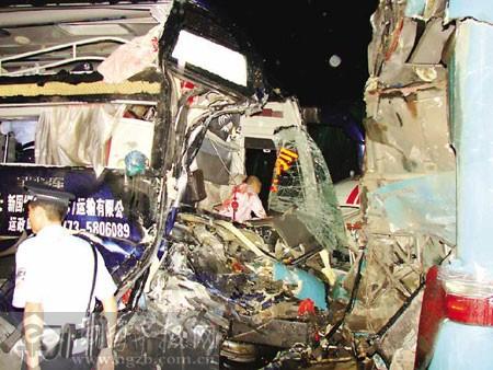 大客车头部严重受损。吴远栋 摄 5月25日晚10时左右,在桂梧高速公路阳朔往平乐方向道其龙隧道口发生四车追尾事故,两辆长途大客车与一辆大货车及一辆小货车撞在一起,造成42人不同程度受伤。事故发生后,阳朔、平乐两县的消防、交警和医院等多个部门联合行动,第一时间赶到现场救援。 5月26日上午,记者在阳朔县人民医院了解到,被送往该院的伤者共33人(3人是外国游客),其中有9人受重伤。 此外,还有9名伤者在平乐县人民医院接受救治。 小货车司机潘先生向记者讲述了事故发生的经过。当晚,他驾车通过道其龙隧道时,突然发现出口处有一辆重型大货车横在路中,一车轮跌落排水沟,司机正在一旁打电话。他立即刹车,将车停下。他正想下车察看,后面一辆大客车快速冲来,重重撞在他的车上,推着他的车撞上了前面的大货车。他的车受损严重,车上5人受伤。他因受伤较轻,就下车抢救伤者。就在这时,后面又有一辆大客车快速开来。他见势不妙,立即架着两名伤者躲开。在这一瞬间,那辆大客车司机显然不知道前面发生车祸,加速超过一辆车后,重重撞上前面的大客车尾部,导致两辆大客车上众多乘客受伤。 一名受了轻伤的男子告诉记者,他是那辆贵州开往福建的大客车上的乘客。当晚10时左右,乘客们大多睡着了。突然间,车后传来“嘭”的一声巨响,乘客们被震出铺位,滚落到走道上。不少乘客血流满面,车厢满是哭喊声。大客车停下后,他从车窗爬出来,才明白刚刚发生了四车追尾事故。 “车祸发生得太突然了,我还没反应过来,就被震得从铺位上跌落下来。”一名搭乘桂林开往深圳大客车的女乘客说,事发后,她因小腿骨折,躺在车厢的走道上动弹不得。她看到大客车的车头已面目全非,司机趴在方向盘上一动不动,白色衬衫被血染红了。被变形的座位卡住身体的乘客们发出痛苦的呻吟,车厢内一片混乱。 事故现场距离平乐县城很近,所以不仅阳朔县的消防、交警、卫生等部门人员出动,平乐县的有关部门人员也迅速赶到现场救援。26日零时许,被困车内的伤者被一一救出,交警和路政部门立即清理现场,疏导交通。 阳朔县人民医院急诊科负责人告诉记者,医院派遣6辆救护车赶到现场后,发现忙不过来,又通知乡镇卫生院出动了两辆救护车。此外,平乐县人民医院也派出多辆救护车。当晚,阳朔县人民医院80多名医护人员彻夜加班,紧急救治伤员。 “阳朔、平乐两个消防中队共出动了19名消防官兵。”阳朔消防中队副指导员吴远栋说,阳朔消防中队当晚10时28分赶到隧道口,只见两辆载满乘客的双层大客车、一辆大货车、一辆小货车撞成一团,车辆损毁严重。一些伤者已从车内自行爬出,两辆大客车内共困着20多名司乘人员。消防员立即用救援设备对车体进行破拆,以解救被困者。据了解,26日上午,阳朔县委、县政府有关领导来到医院看望伤者,并要求医院全力救治伤者。 交警初步调查得知,事故是因下雨路滑、行车视线不良引起的。目前,事故的具体原因调查及善后工作仍在进行中。 |