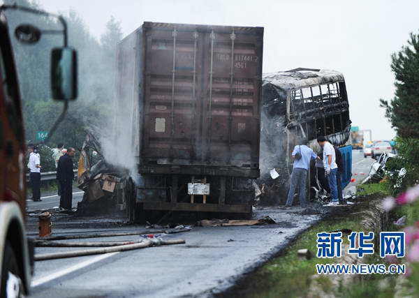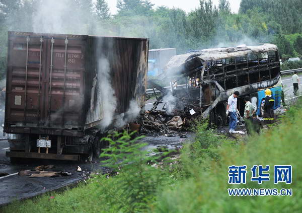 3日下午,吉林省境内发生的特大交通事故已经造成17人死亡。经进一步确认,共有37人受伤,伤者中有4人伤势较重。 事故发生后,受伤人员先后被送往吉林大学第一医院二部和吉林大学中日联谊医院等医院进行救治。据介绍,目前这4名伤势较重的人员,经过及时救治目前并无生命危险。但医生表示,所有伤者都不排除发生病情变化的可能。 当日14时53分,长春绕城高速公路哈尔滨方向164公里处,青岛华旅运输公司的卧铺客车左前胎突然爆胎,冲过护栏后驶入对向车道,与辽宁省营口经济技术开发区金马物流有限公司的半挂集装箱货车正面相撞后,两车起火发生燃烧,造成卧铺客车内13人当场死亡,半挂集装箱货车内3人当场死亡,伤者中一人在送往医院途中死亡。