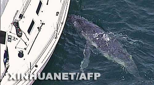 澳大利亚迷路小鲸鱼错把游艇当妈妈 跟着不肯离去
