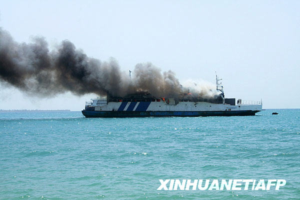 3月13日,在坦桑尼亚桑给巴尔的马林迪港附近海域,一艘失火的轮船冒出滚滚浓烟。这艘名为“MV塞伦盖蒂”的轮船当天在此发生失火事故,目前事故原因正在调查中。 |