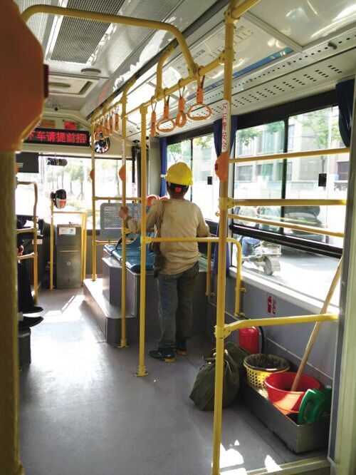 05月20日讯(空荡荡的海宁2路公交车上,一个农民工大姐一路站着不坐。有人上前询问,她回答说:“我这衣裤太脏了,怕把座椅弄脏,影响他人乘车。”