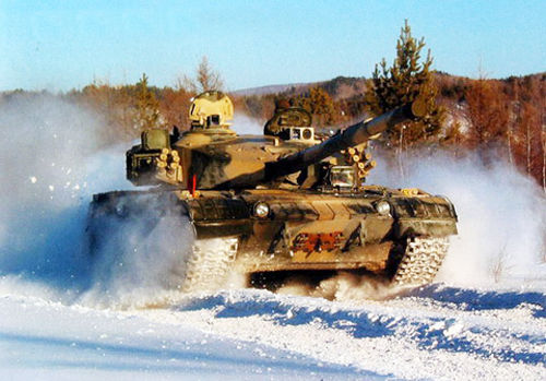 在雪地里疾驰的新型坦克