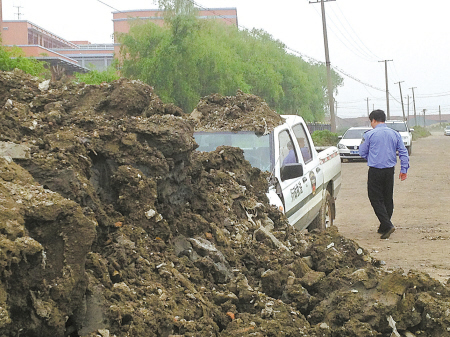 40多吨黑乎乎的渣土从天而降,人差点被“活埋”在里面,这是高新区城管队员陈某执法时的一次惊险遭遇。昨天,制造这惊险一幕的人被判刑。 安徽人郑某26岁,在宁波做建筑工程多年,开始跟着别人的工程队,后来自己承包了一辆工程车单干。为了多赚些外快,他有时还帮人做渣土处理,倒一车渣土能赚600元。 今年4月18日凌晨5点左右,郑某开着工程车来到高新区杨木碶路和盎孟港路交叉口,车上装了40多吨渣土,准备倒到盎孟港路路边一侧空地上。他到达时,前面已经有两辆车在排队等着了。事实上,该路段并非渣土清运路段,但经常有人在此违规倒渣土。 前面两辆车很快把渣土倒完,郑某正准备行动时,一束强光打过来。 “城管来啦!”有人大喊,已经倒完渣土的车马上开走,郑某一看,后面果然有一辆貌似城管的执法车开来,城管队员在对他们喊话“快停车”。 郑某车上还有大量渣土,跑不快,情急之下,他下车打开车后翻斗的钩子,准备把渣土倒向城管执法车,这样对方就追不着自己了。 陈某看郑某突然下车,正在疑惑,发现郑某工程车的翻斗在慢慢竖起。陈某知道,翻斗要倒渣土了,马上倒车后退,才倒了一两米路,眼前一黑,40多吨渣土扑面而来……所幸陈某动作快从车里逃脱,但整辆车已经被渣土掩埋,车窗玻璃被压得粉碎。郑某趁乱逃离了现场。 事发后,高新区警方对事发路段进行了布控,第二天上午,有三个年轻小伙子出现在那里,时不时张望那辆被掩埋的执法车,民警讯问后,发现其中一人正是郑某老乡,是受郑某之托来看情况的。当天,郑某被警方抓获。他说:“当时我一心想着跑,啥也不管了,还好里面的人没伤着。” 昨天,江东法院以妨碍公务罪判处郑某有期徒刑10个月 |