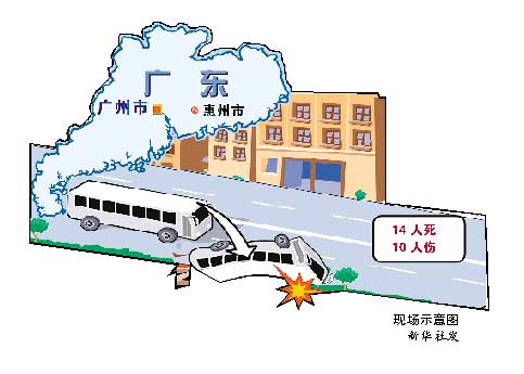 广东惠州大客车失控侧翻 致14人死亡10人伤