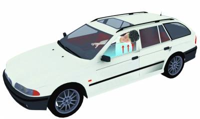 现在很多车辆都有遥控钥匙,有的车辆在锁车的同时,如果忘记了关闭车窗,再按一下锁车键,未关闭的所有车窗会自动关闭——如果遥控钥匙在孩子手中,而此时孩子正好坐在车内,车窗摇开,头部伸出车窗,如果误按遥控器,车窗会迅速关闭,慌乱中又不知道按开窗键,容易被夹。